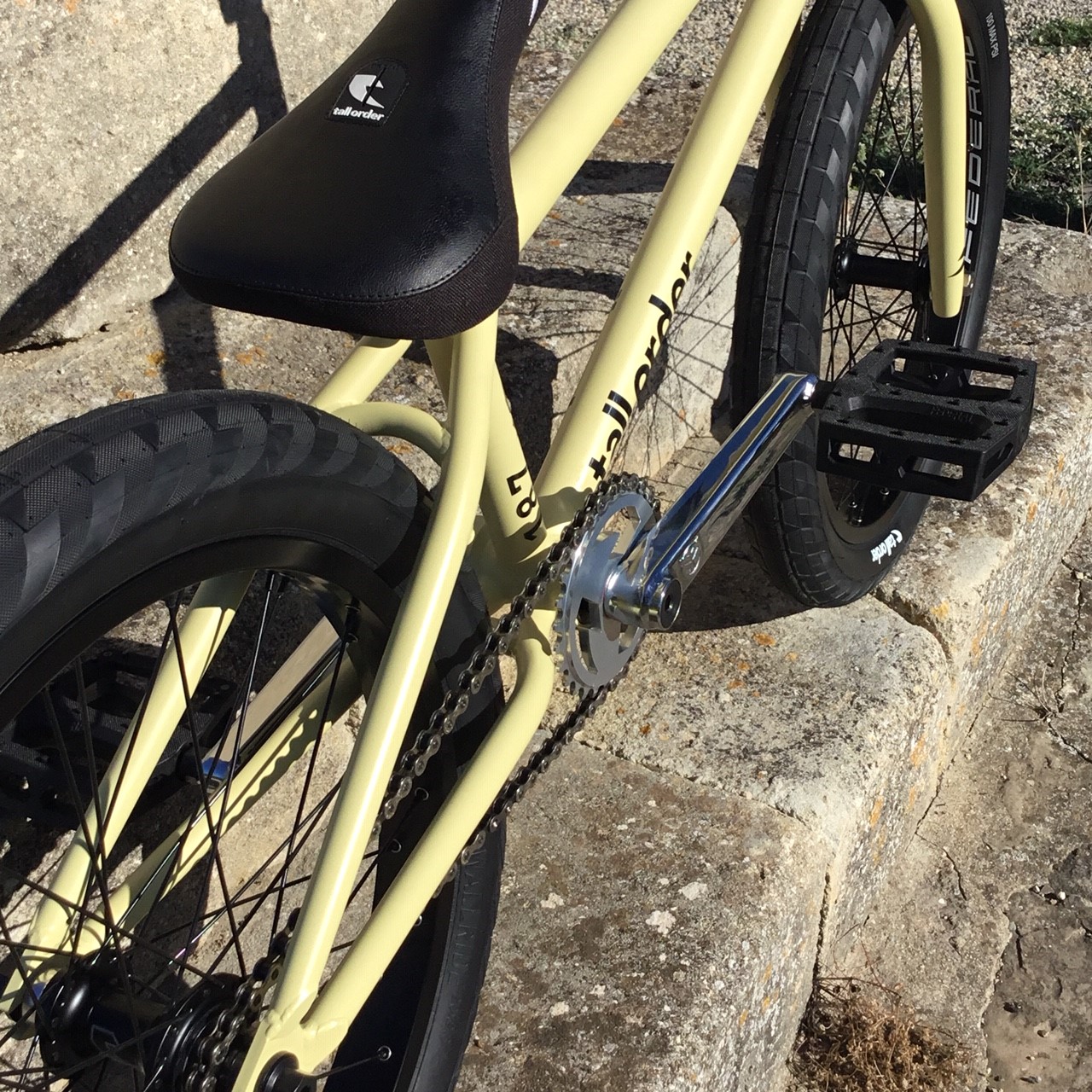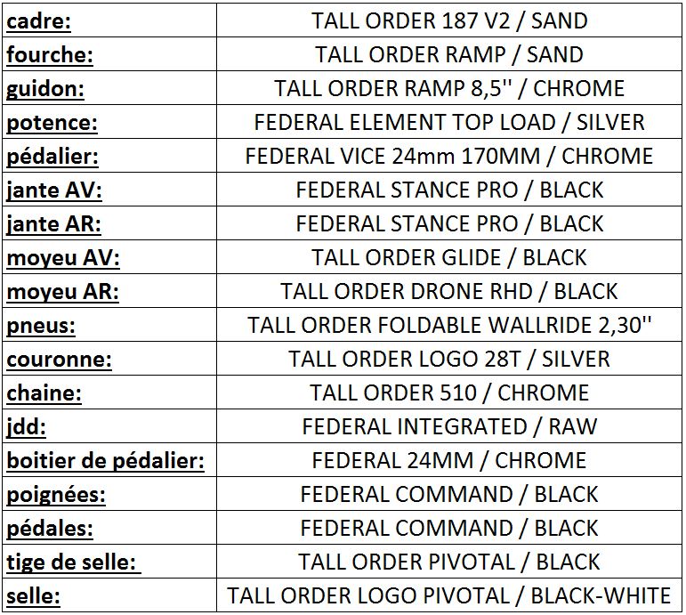Pour l'occasion il s'est monté un bike flambant neuf sur une base de cadre TALL ORDER 187 SAND avec des parts TALL ORDER et FEDERAL. On vous montre tout ça juste en dessous!