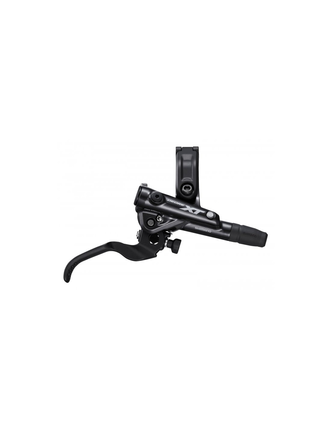 The Shimano XT brake kit consists of a Shimano XT BL-M8100 brake lever and a BR-M8110 brake caliper. The Deore XT range is one of the highest-quality ranges in the world of Shimano brakes. Its lever is mounted at an angle to provide two contact points on the handlebar, increasing rigidity and feedback. It offers very powerful braking and a relatively short lever throw for better intensity control.