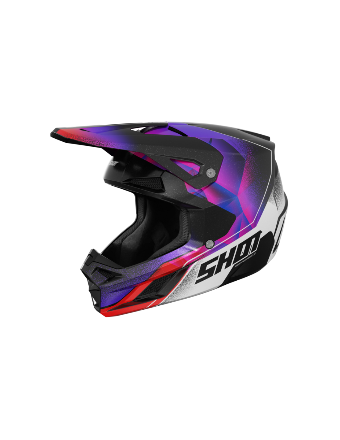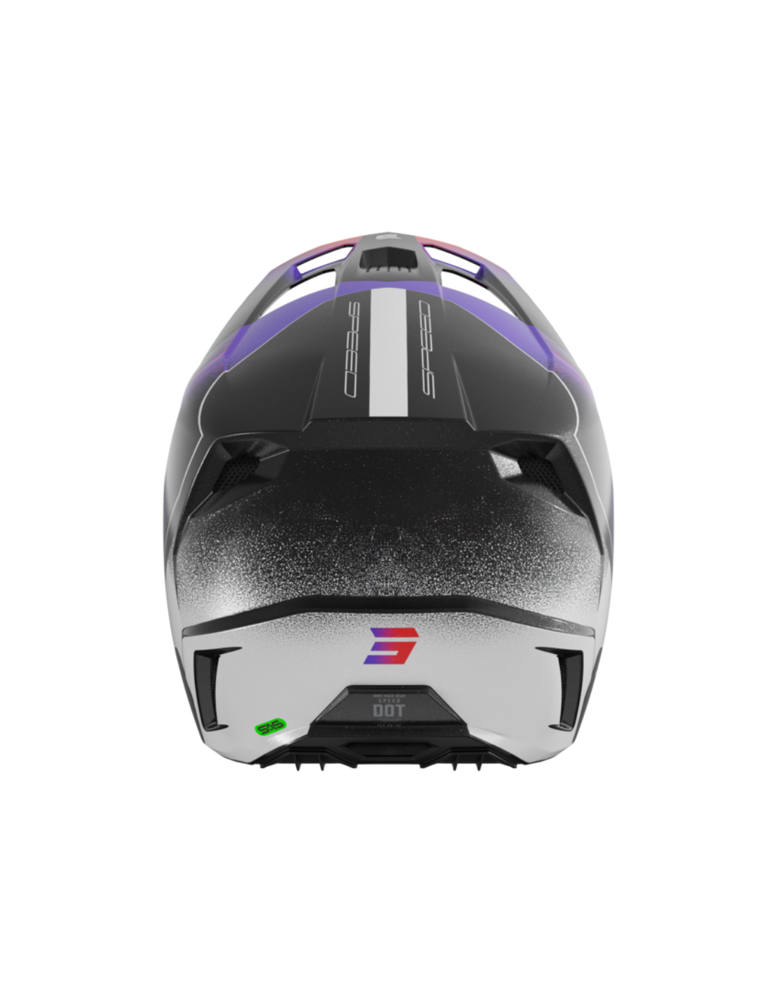 The Shot Speed helmet is a high-performance and safe full-face motorcycle helmet. Its SRS synthetic reinforced shell, combined with the SAS shock absorbing system, provides excellent protection. It features 2 shell sizes and 2 EPS liners for an optimal fit. Its efficient ventilation with 9 front air intakes and 5 rear extractors, removable and washable hypoallergenic interior, adjustable ventilated peak, and Double D retention system make it a comfortable, reliable, and durable helmet.