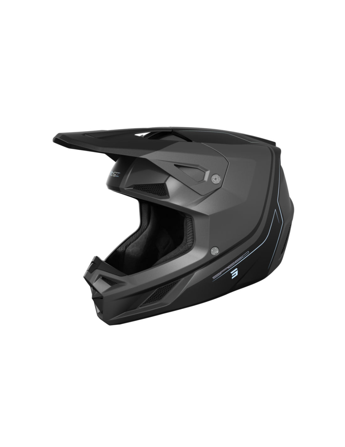 The Shot Speed helmet is a high-performance and safe full-face motorcycle helmet. Its SRS synthetic reinforced shell, combined with the SAS shock absorbing system, provides excellent protection. It features 2 shell sizes and 2 EPS liners for an optimal fit. Its efficient ventilation with 9 front air intakes and 5 rear extractors, removable and washable hypoallergenic interior, adjustable ventilated peak, and Double D retention system make it a comfortable, reliable, and durable helmet.