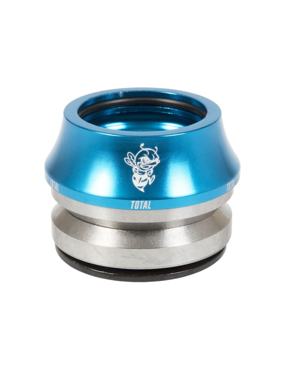 The Total Killabee headset, featuring Kyle Baldock's signature, is designed for setups with a 1-1/8" integrated headtube and a 1-1/8" fork steerer. The top cap is made of 6061 aluminum with a 15mm height to minimize the number of spacers under the stem. It comes with two high-quality sealed bearings.