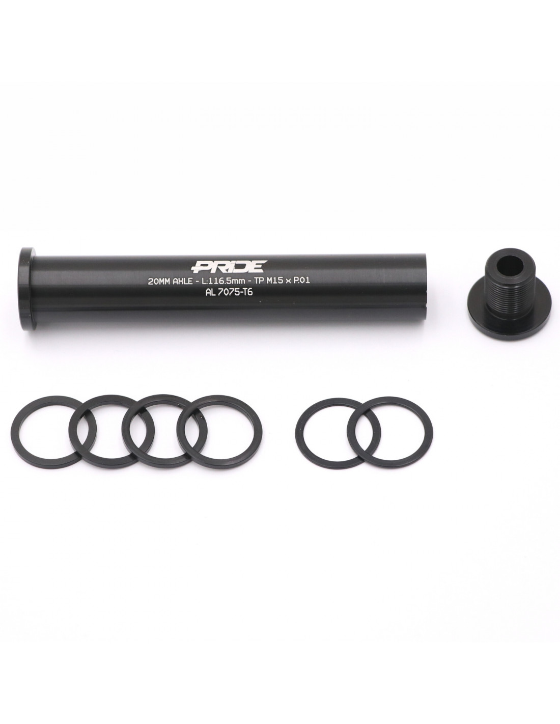 This part is a BMX Race front hub accessory. This 116.5mm axle goes through the front hub to hold the wheel in the fork. Pride Racing now offers a 116.5mm long axle to fit any configuration. Made from 7075-T6 aluminium, this axle provides greater rigidity and reliability. Sold with 6 spacers to adjust your compression according to your axle length, this part can fit with all forks on the market.