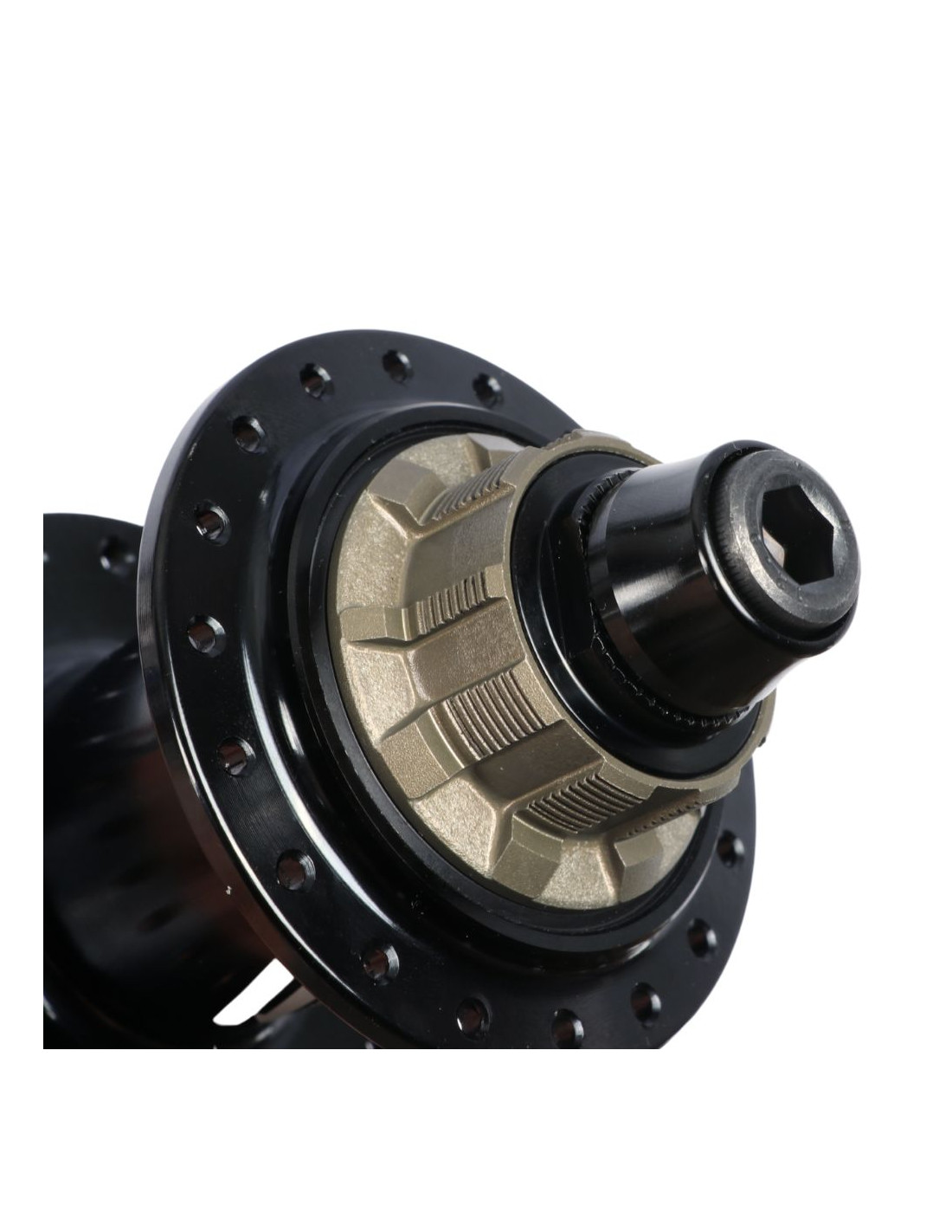 It comes with an aluminum driver with 6 pawls that deliver 108 points of engagement, engaging 3 at a time every 3.33°. The internal axle has a hex key interface for easier disassembly and maintenance.