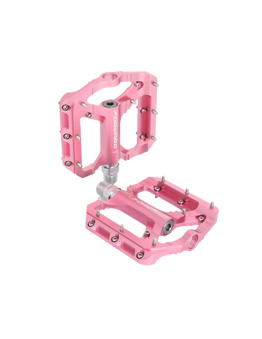 The new Forward Zenith pedals complement the range to offer a wide choice. Available in several colors with a beautiful finish and a laser logo to suit all setups. The platforms are made of extruded and CNC machined 6061 aluminum. They are mounted on a robust Cr-Mo steel axle with 3 sealed bearings. Zenith Pedals will delight riders seeking grip thanks to the 7 removable and interchangeable pins with stoppers on each face.
