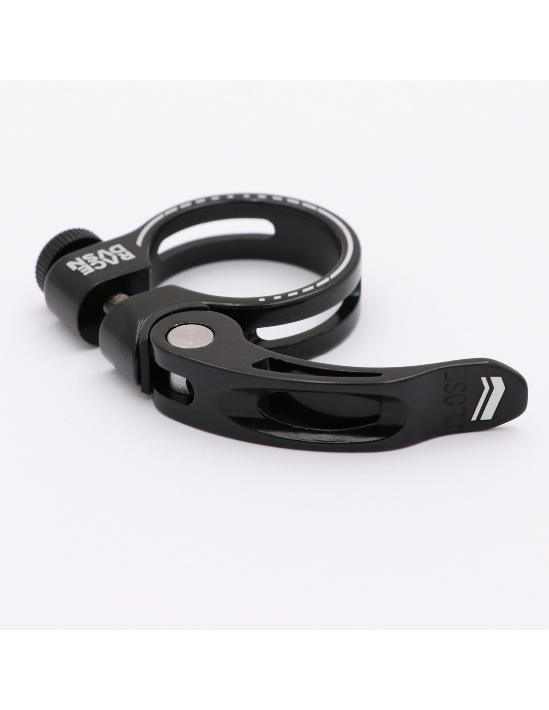 The Stay Strong Race DVSN Chevron quick release seat clamp is designed for frames with a classic round seat tube.