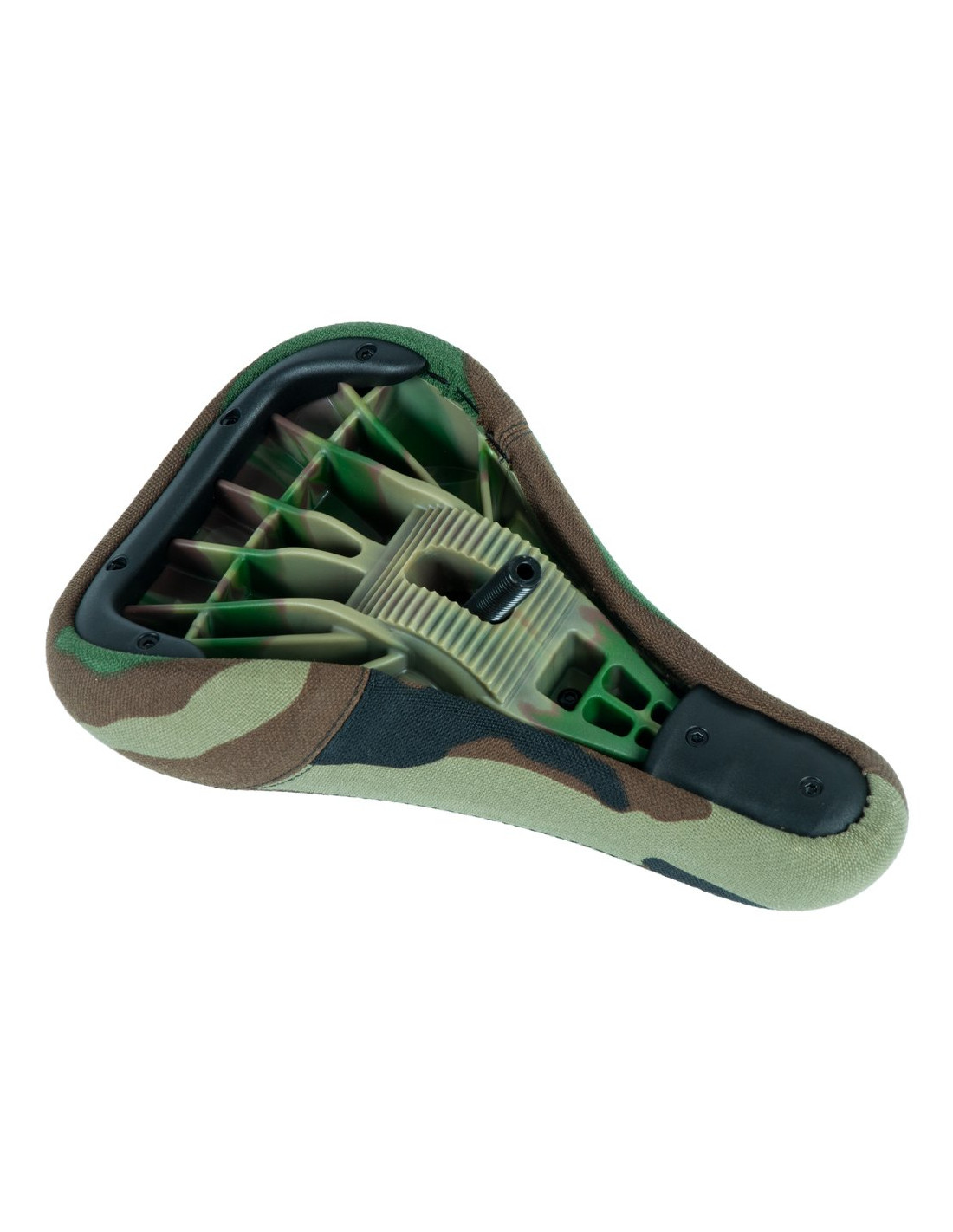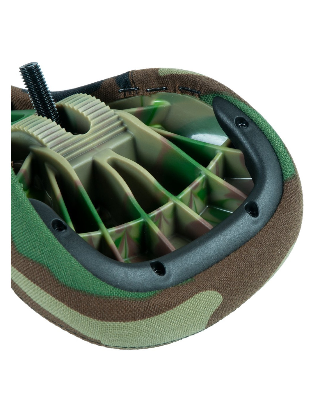 The Pivotal Mid seat has soft padding and a durable cover. The internal bolt is also hollowed out for weight reduction. Now available with green camo plastic base.