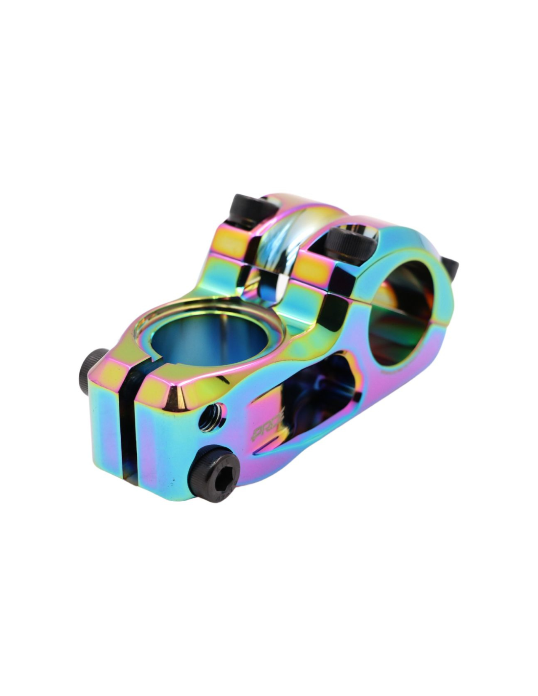 The CAYMAN V2 stem is the latest version from Pride Racing, featuring a fresh design with intricate laser-cut details to enhance its appearance and reduce weight. This stem is entirely machined using CNC machines from a 6061-T6 aluminum block, ensuring impeccable finishing quality. With a handlebar contact surface measuring 48mm wide, it gains stiffness and ensures optimal handlebar clamping. All these improvements make it extremely durable and long-lasting. Furthermore, the hardware has been upgraded to stainless steel screws to prevent corrosion. These screws are standardized (DIN 912), making it easy to find replacements.