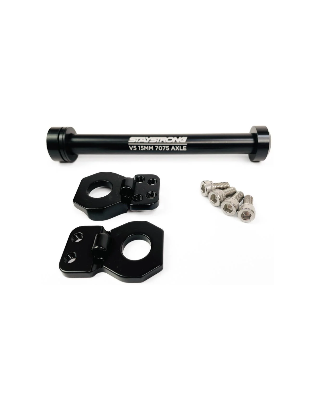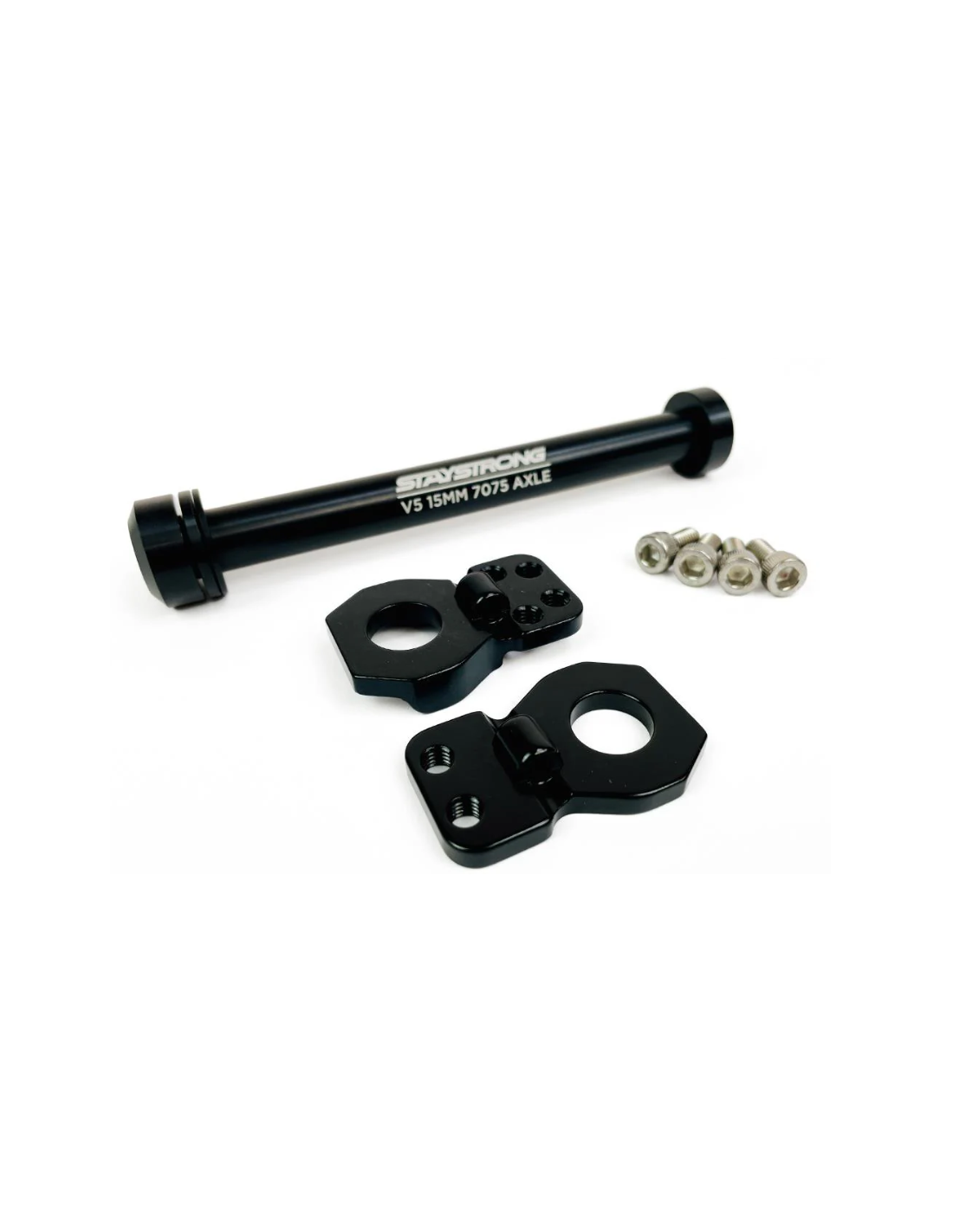 Le kit axe 15mm est conçu en Aluminium 7075. Il vous permet de convertir votre cadre Stay Strong V5 pour pouvoir monter un moyeu 15mm à l'arrière. Note : L'axe traversant est livré avec les deux plaques internes ainsi que les 4 vis de fixation.