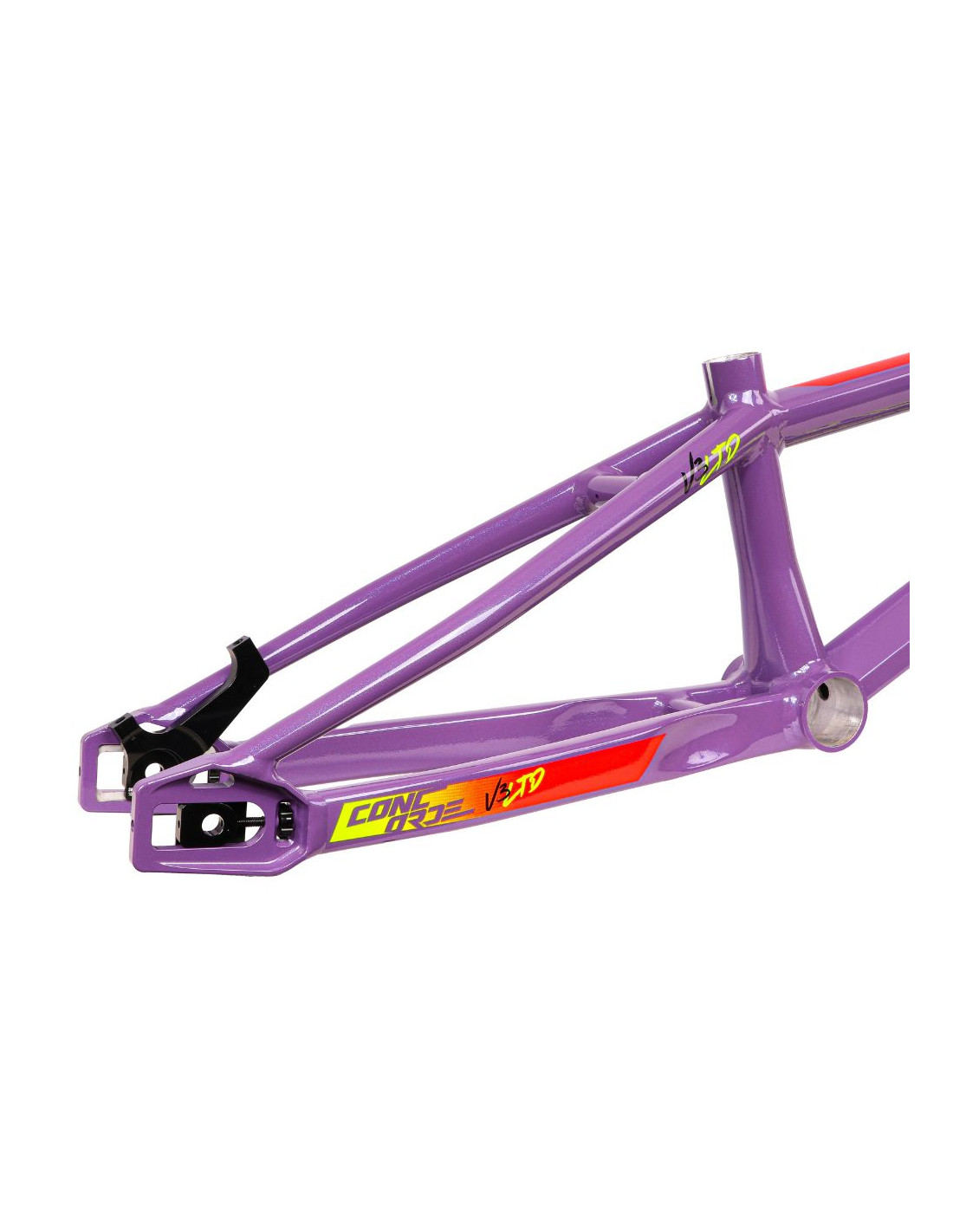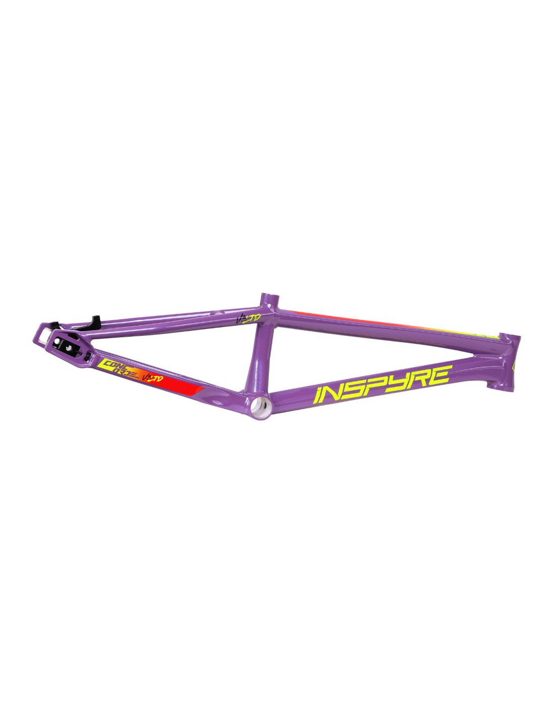 Le Concorde V3 propose de tout nouveaux tubes sur l’ensemble du cadre à l’exception du tube diagonal. Chaque tube de ce cadre a été méticuleusement hydroformé pour atteindre un équilibre optimal entre légèreté, robustesse et aérodynamisme. L'attention portée aux détails se manifeste notamment dans la conception novatrice de l'intersection entre le tube diagonal, le boîtier de pédalier et les bases arrières. Cette intersection, la plus large sur un cadre BMX Race en aluminium actuel, est le fruit d'une ingénierie précise de l'équipe Inspyre.