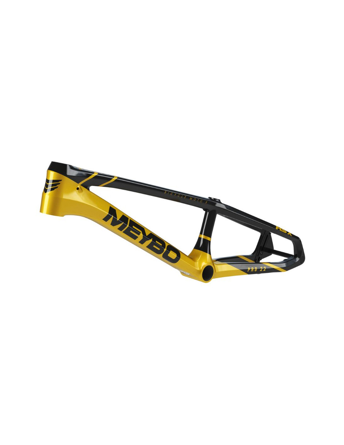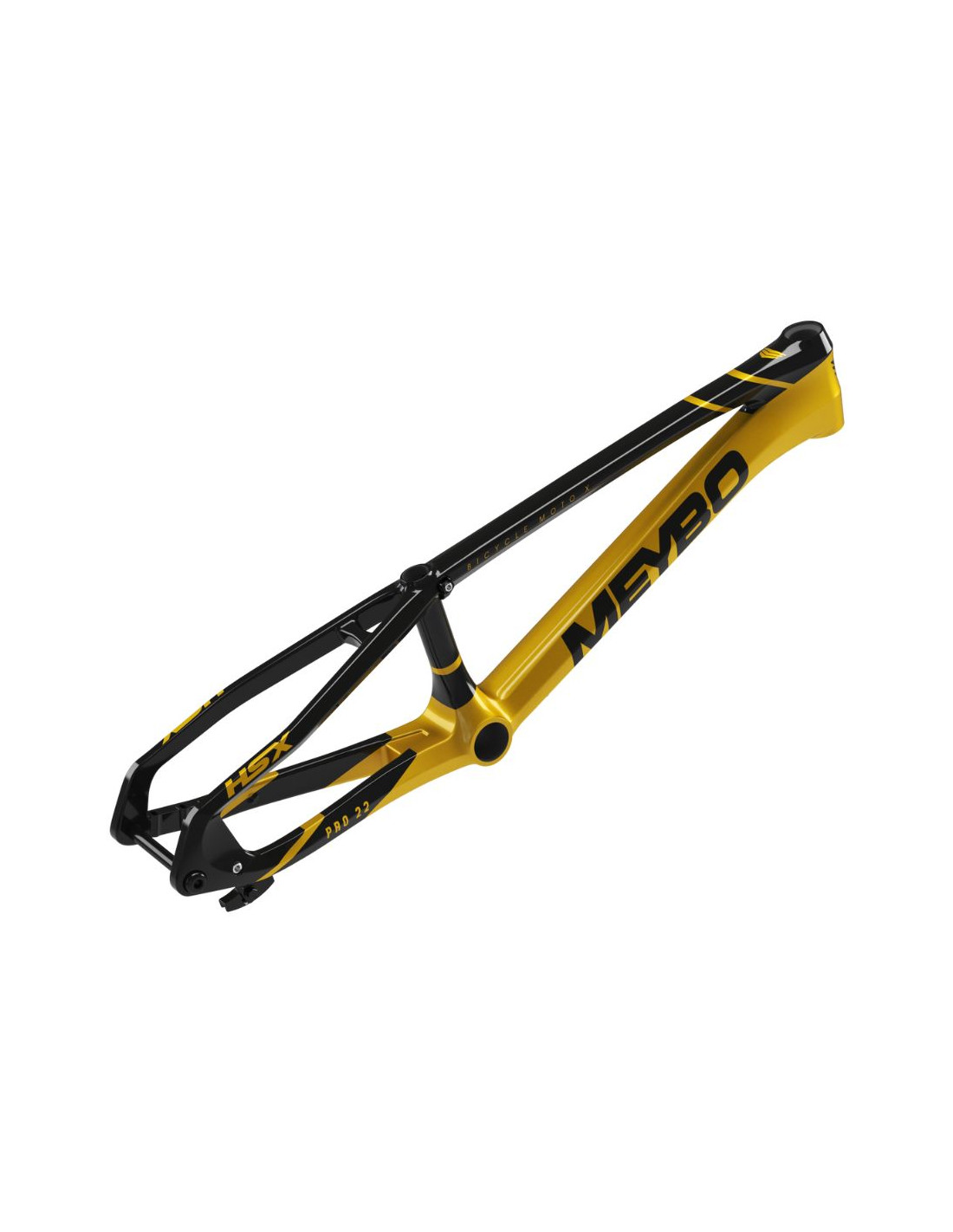 Le cadre Meybo HSX Carbon est le plus performant de la gamme, conçu pour les compétitions les plus exigentes. Fabriqué à partir de fibre de carbone T800 Toray, ce cadre allie légèreté, rigidité et stabilité. Grâce à sa géométrie pensée pour les pistes de coupe du monde, il garantit un équilibre parfait entre maniabilité et stabilité, même à grande vitesse. Ce modèle haut de gamme est équipé d'une fixation d'étrier de frein "Flat-mount", conçue pour des disques de 120 mm, optimisant ainsi le freinage. Il est également doté d'un axe traversant de 15 mm en aluminium 7005, usiné par CNC, pour assurer une rigidité maximale à l’arrière.