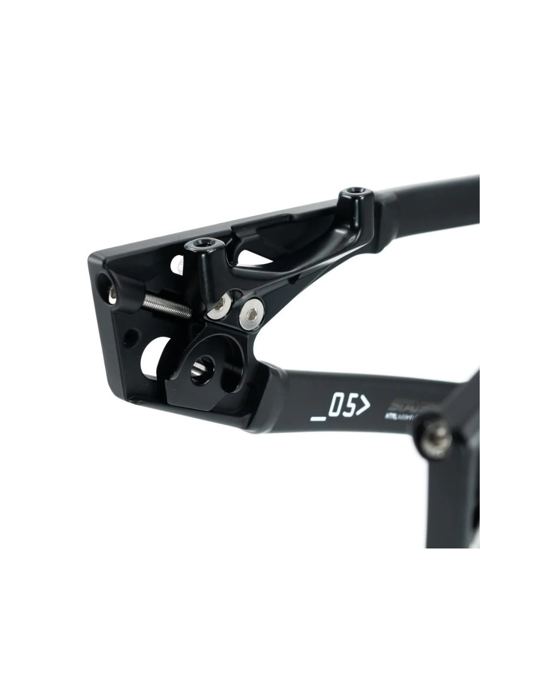 La principale nouveauté du cadre V5 est son dropout Race DVSN avec son système de fixation à 5 points qui permet de fixer les plaques ainsi que le support de disque directement sur le cadre pour plus de facilité et rigidité. Ce nouveau système de dropout et tendeur de chaine facilite grandement le réglage et le démontage de la roue arrière.