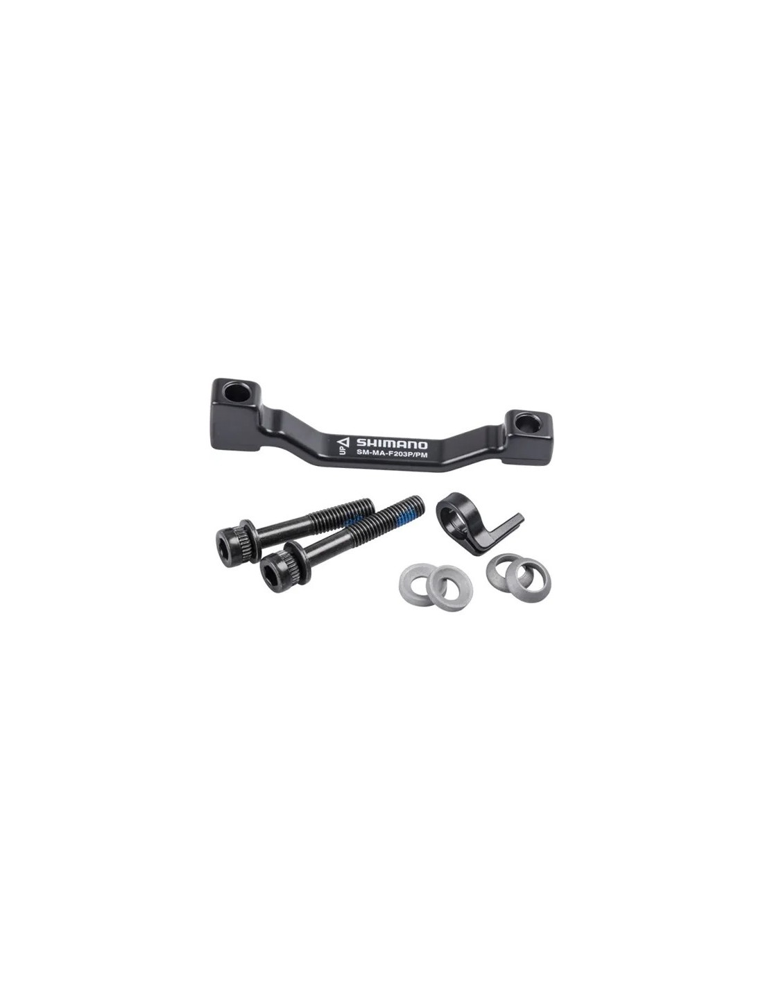 - L'adaptateur SHIMANO permet de monter un étrier de type Post-Mount (PM) sur un cadre Post-Mount (PM). Il permet de réhausser l'étrier de frein de 23 mm. Cet adaptateur peut-être utiliser aussi bien en BMX Race pour passer d'un disque 120mm à 140mm que en VTT pour passer d'un disque 180mm à un 203mm.