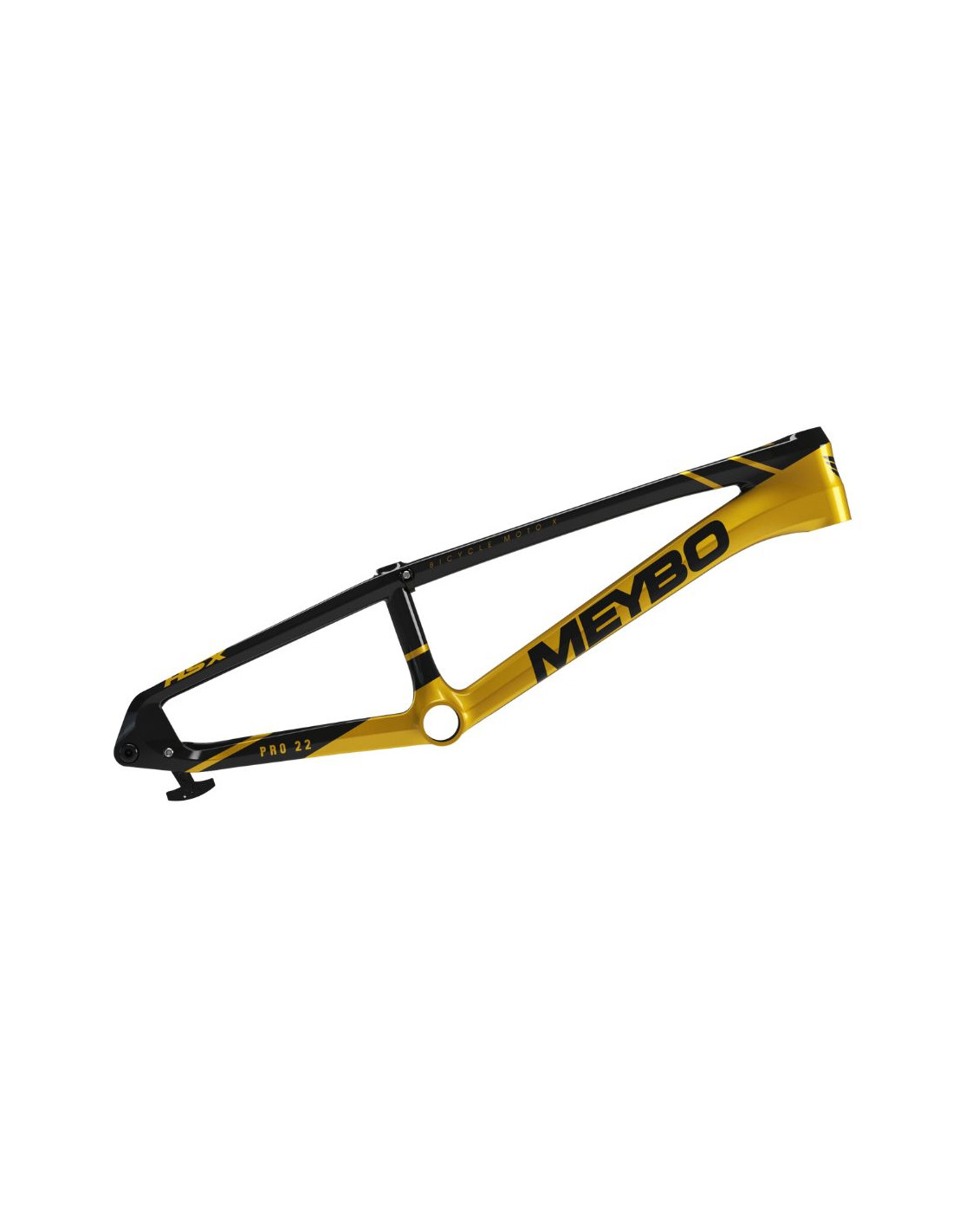 Le cadre Meybo HSX Carbon est le plus performant de la gamme, conçu pour les compétitions les plus exigentes. Fabriqué à partir de fibre de carbone T800 Toray, ce cadre allie légèreté, rigidité et stabilité. Grâce à sa géométrie pensée pour les pistes de coupe du monde, il garantit un équilibre parfait entre maniabilité et stabilité, même à grande vitesse. Ce modèle haut de gamme est équipé d'une fixation d'étrier de frein "Flat-mount", conçue pour des disques de 120 mm, optimisant ainsi le freinage. Il est également doté d'un axe traversant de 15 mm en aluminium 7005, usiné par CNC, pour assurer une rigidité maximale à l’arrière.