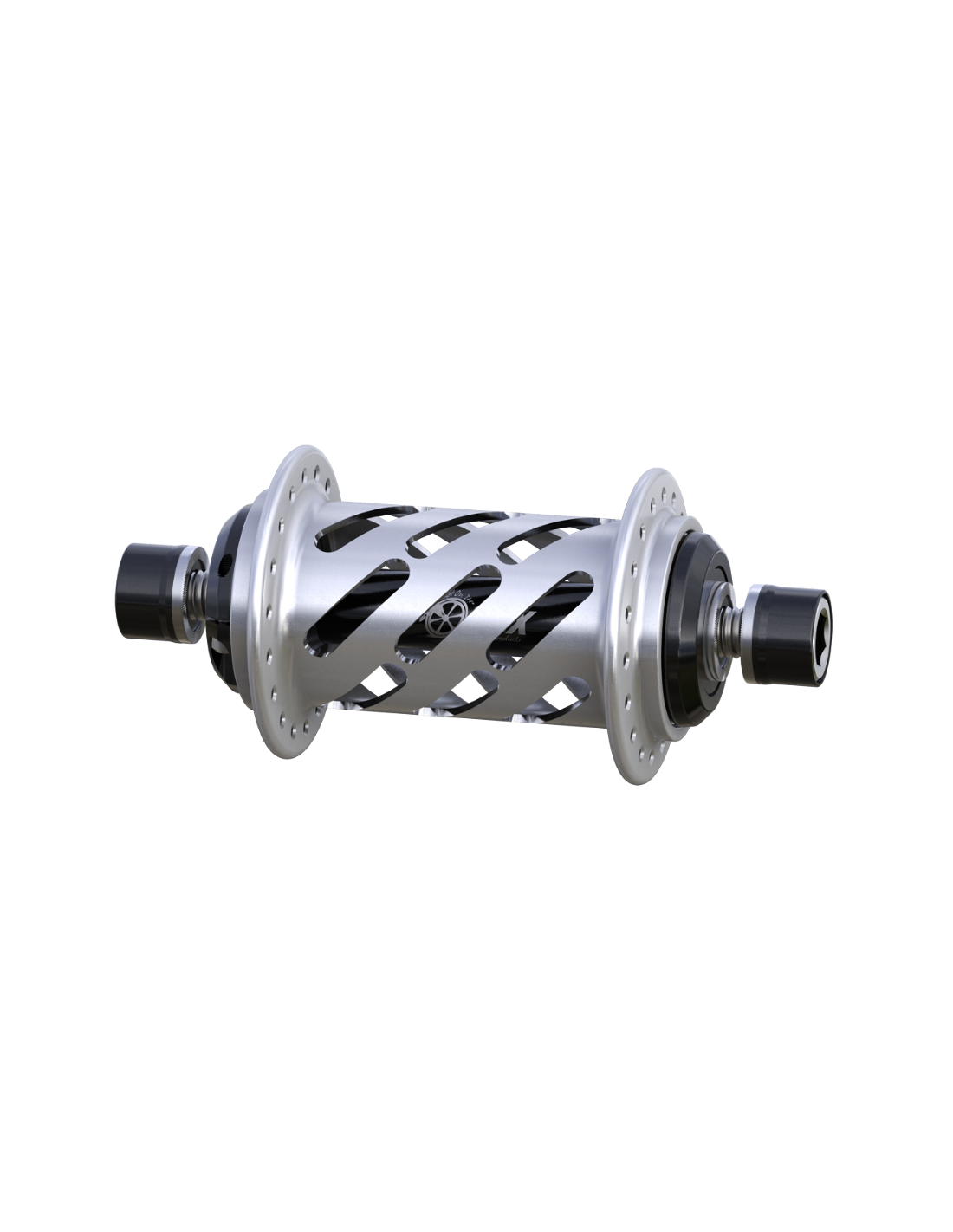 Le moyeu avant Helix 10mm a un look unique grâce à son corps ajouré, usiné CNC. La forme épaisse du corps en fait un moyeu très classe. Il est possible d'adapter un axe de 20mm sur ce moyeu d'axe 10mm, disponible ICI.
