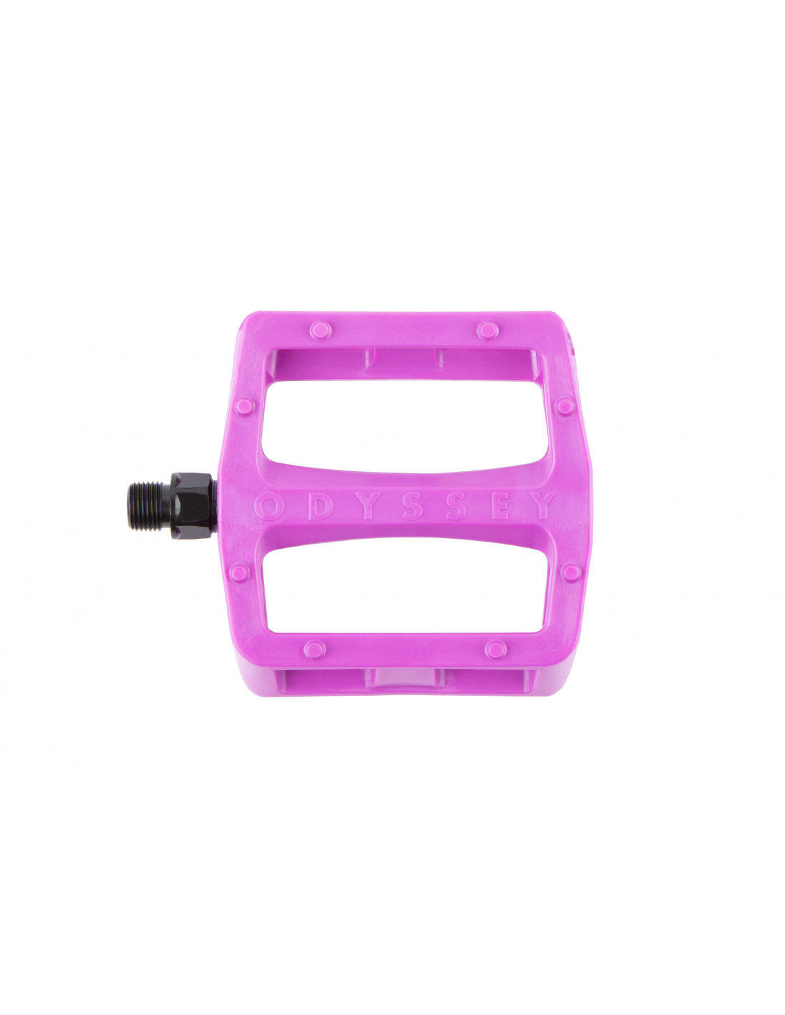 La paire de pédales Odyssey Grandstand V2 a été repensée afin de réduire le jeu au niveau de l'axe. Des bagues ont été ajoutées au début et à la fin de l'axe.