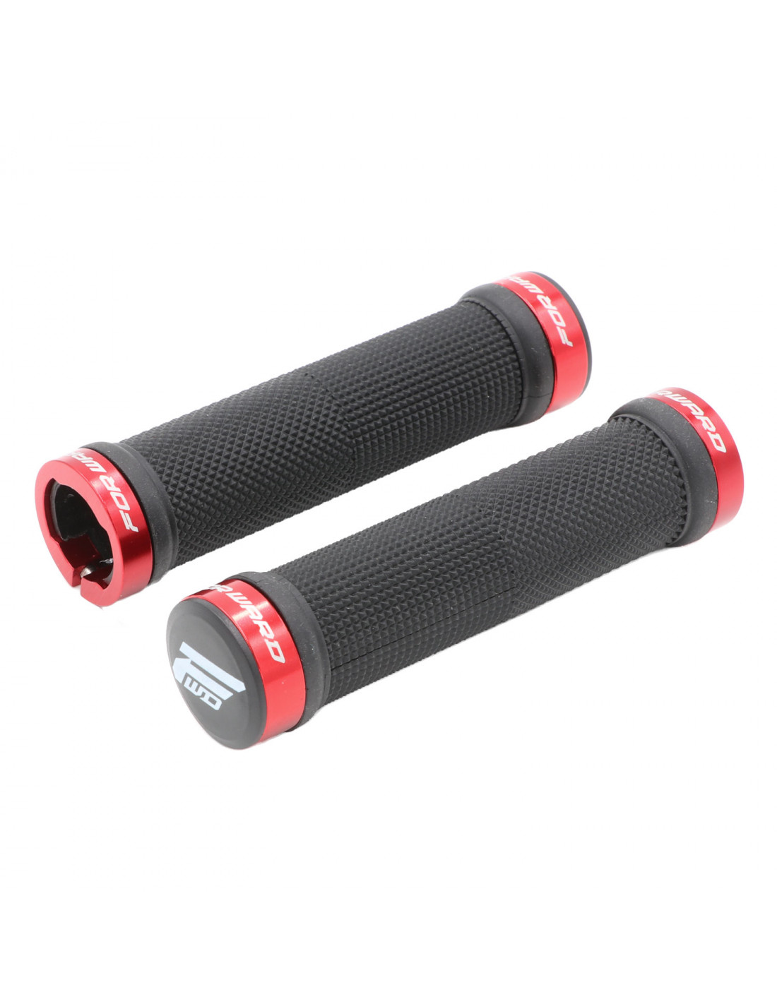 Poignées FORWARD GEM, design 2 locks, disponible en 7 coloris, 30mm de diamètre externe, 130 mm de longueur, gomme 35A confortable et résistante. Livrée avec une paire lock on FORWARD.