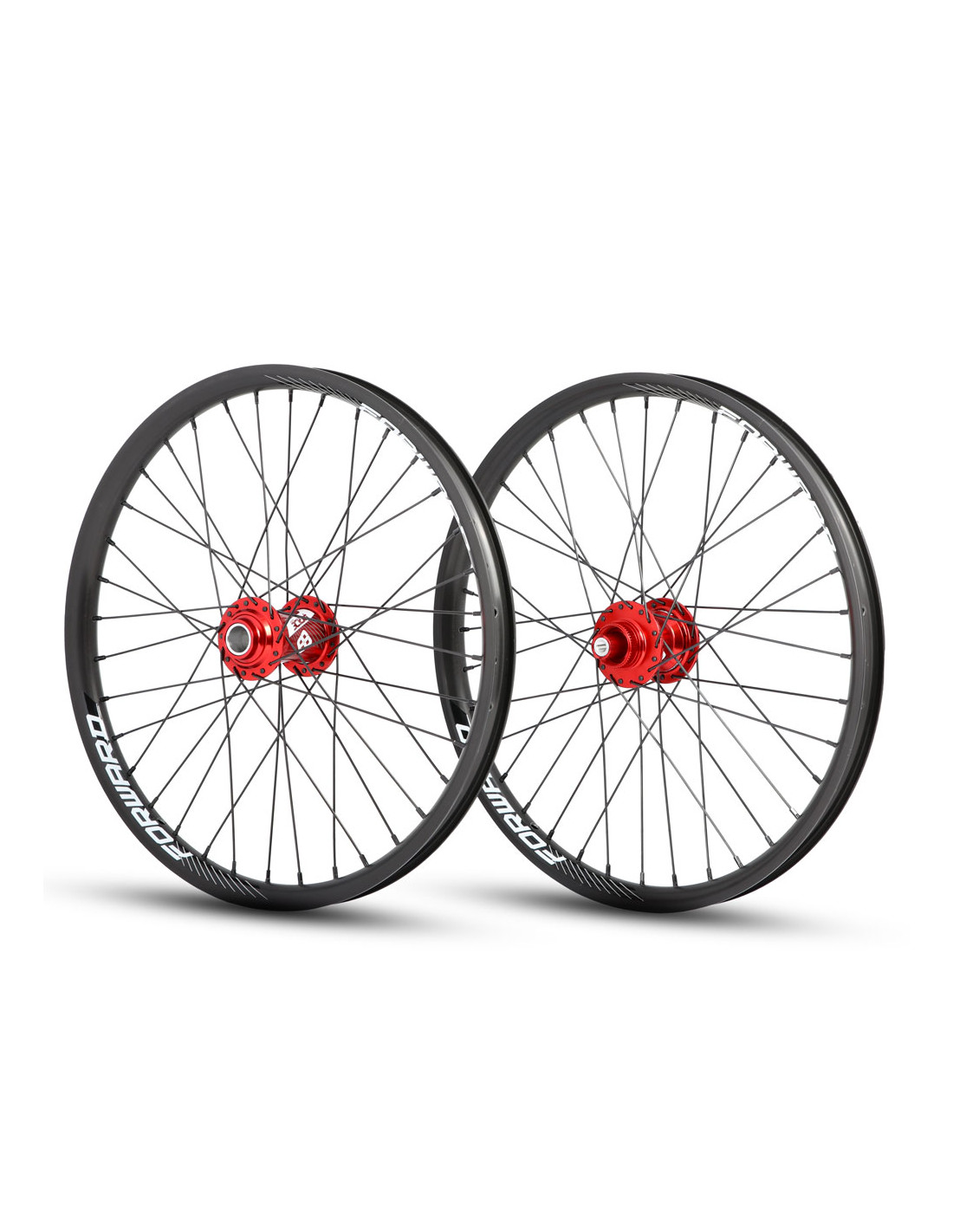 Les roues Forward/Pride ont été spécialement développées pour les BMX Race équipés de jantes 20" (406). Elles combinent des jantes en aluminium 6061 de la marque Forward avec des moyeux Pride Control V1. Les jantes à double paroi offrent un bon équilibre entre solidité et légèreté. Les moyeux Control, quant à eux, sont équipés de 6 cliquets microdentés, permettant un système d'engagement précis avec 180 points de contact. Le résultat est une relance quasi immédiate, aussi bien en sortie de virage qu’au départ d’une course.