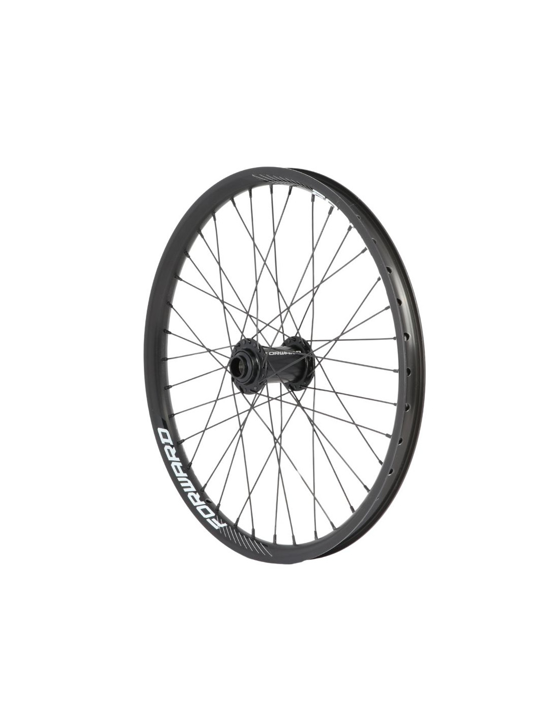 La roue avant Forward intègre une jante double parois en aluminium 6061, offrant une excellente solidité tout en conservant un poids réduit. Elle est compatible avec les pneus de 20x1.40" à 20x1.90".