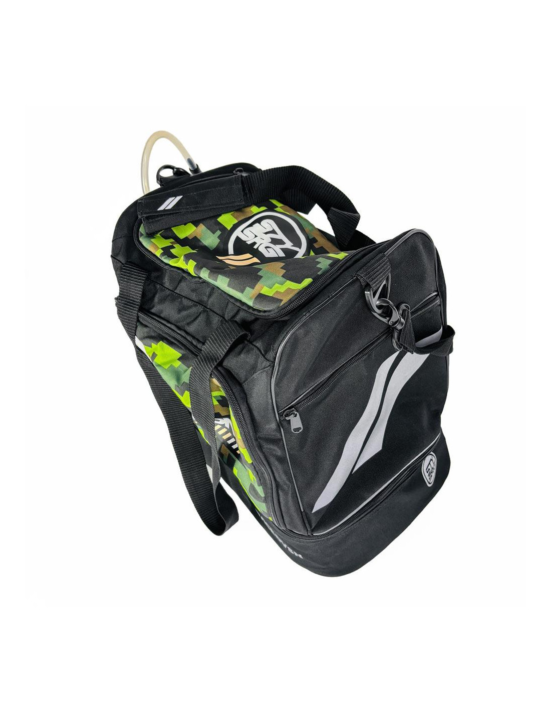 Il est composé d'un grand compartiment pour le casque ainsi que des rangements sur le côté pour placer sa gourde et un petit outillage. Le fond du sac est composé d'un emplacement dans lequel pourra être placé sa paire de chaussures ainsi que sa tenue pour rouler.