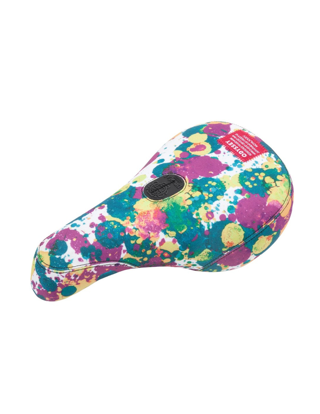 La selle Odysser Splatter est la signature du rider Aaron Ross. Elle arbore une fixation Pivotal et une base "fat". Elle se distingue par son graphisme éclaboussé haut en couleur, obtenu grâce à une technique de sublimation. Ce modèle unique sera également proposé sur le vélo signature Sunday 2023 d’Aaron Ross. Un détail tissé Red Label vient compléter le design avec une touche premium.