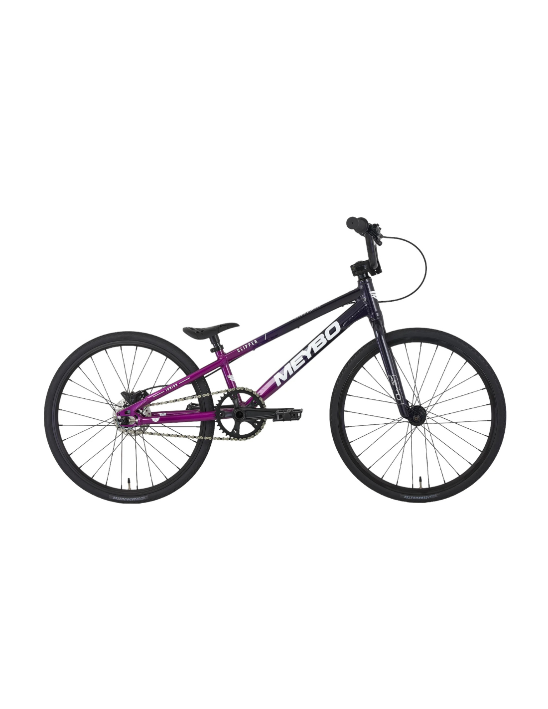 Le Clipper est équipé d'un cadre en aluminium basé sur la géométrie du cadre Meybo Holeshot, une géométrie testée et approuvée par de nombreux pilotes d'élite. On retrouve également une fourche et un guidon SD en CrMo, une paire de roues en aluminium avec des jantes à double paroi montées sur un moyeu arrière à 180 points d'engagement, des pneus Vee Tire Speedbooster, une chaîne KMC E8 et de nombreux autres composants conçus pour la pratique du BMX Race (plus de détails dans les spécifications).