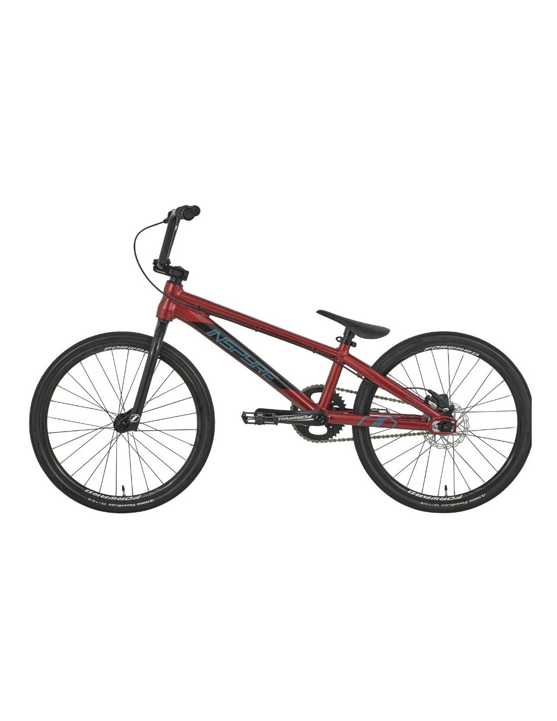 Le vélo se compose autour du cadre Inspyre Bicycles® Evo Disk, il intègre toutes les spécificités d’un cadre BMX Race haut de gamme. Des tubes hydroformés en aluminium 6061-T6 garantissant un excellant rapport poids / performance. Sa géométrie lui permet d’être à la fois stable et réactif. Le cadre intègre les pattes arrière Inspyre Bicycles ® Swell. En plus d’apporter de la rigidité à l’arrière du cadre, ces pattes permettent d’intégrer la patte de frein disque Pride Racing ® tout en offrant une tension de chaîne parfaite.