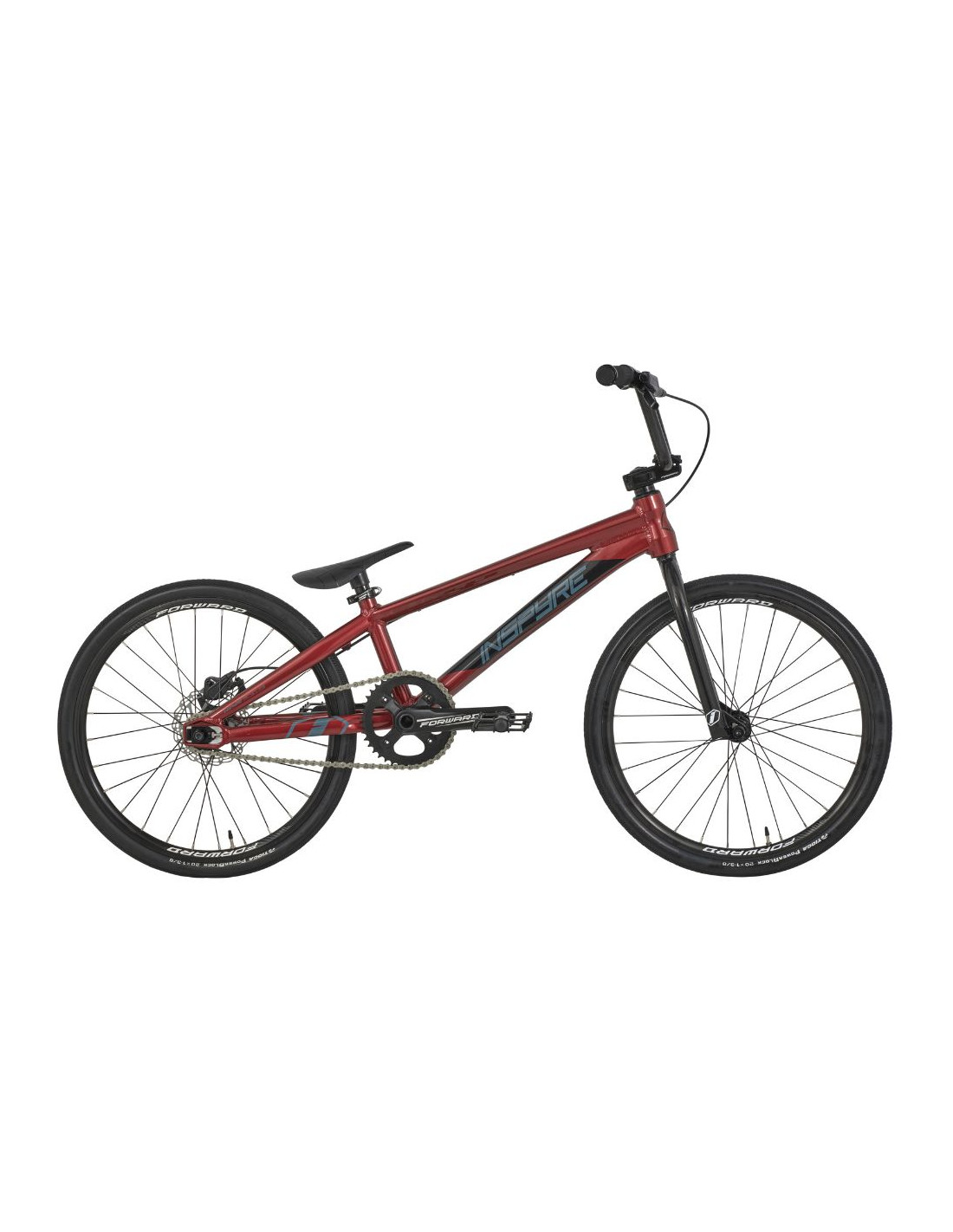 Le vélo se compose autour du cadre Inspyre Bicycles® Evo Disk, il intègre toutes les spécificités d’un cadre BMX Race haut de gamme. Des tubes hydroformés en aluminium 6061-T6 garantissant un excellant rapport poids / performance. Sa géométrie lui permet d’être à la fois stable et réactif. Le cadre intègre les pattes arrière Inspyre Bicycles ® Swell. En plus d’apporter de la rigidité à l’arrière du cadre, ces pattes permettent d’intégrer la patte de frein disque Pride Racing ® tout en offrant une tension de chaîne parfaite.