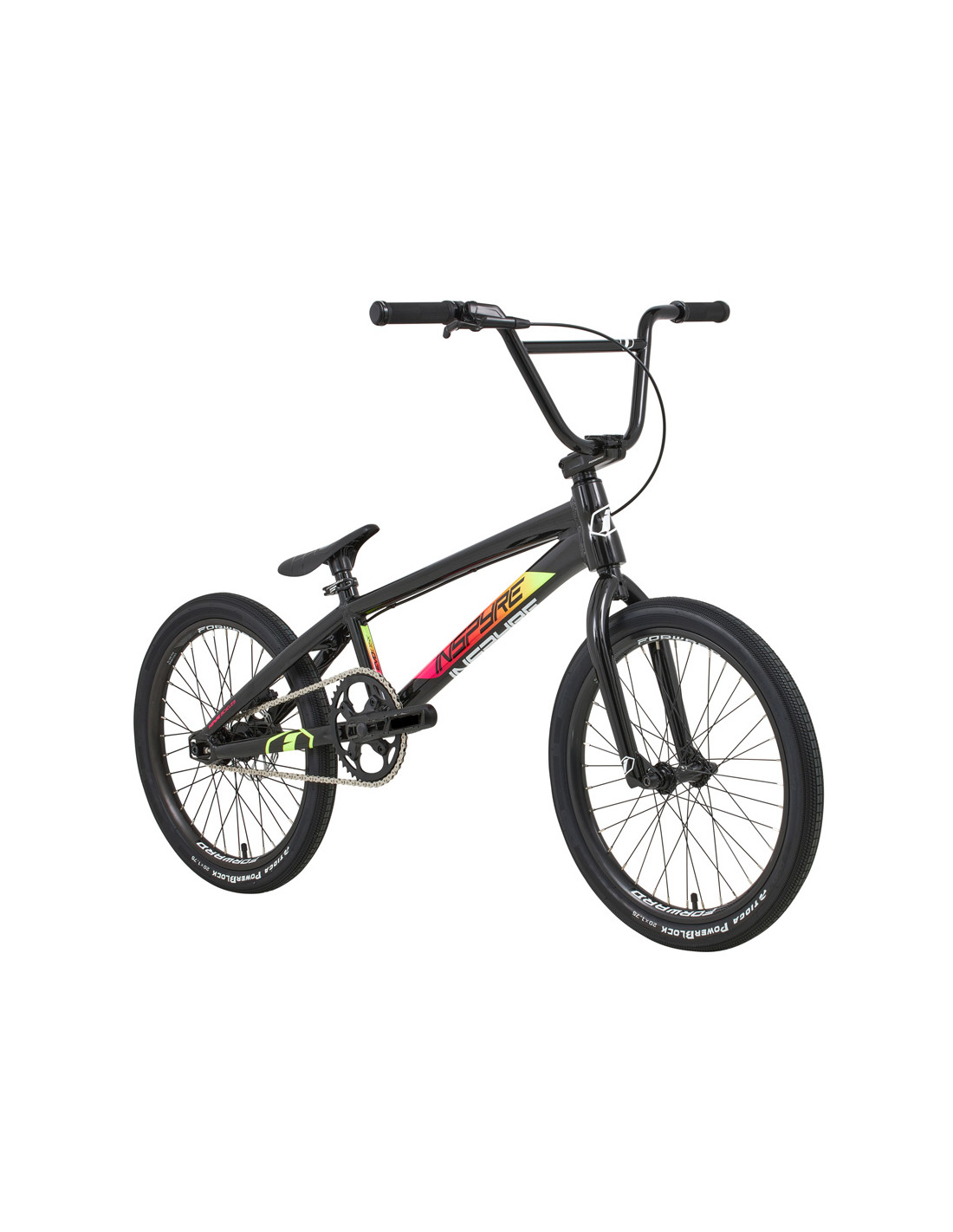 Le vélo se compose autour du cadre Inspyre Bicycles Evo Disk, il intègre toutes les spécificités d’un cadre BMX Race haut de gamme. Des tubes hydroformés en aluminium 6061-T6 garantissant un excellant rapport poids / performance. Sa géométrie lui permet d’être à la fois stable et réactif. Le cadre intègre les pattes arrière Inspyre Bicycles Swell. En plus d’apporter de la rigidité à l’arrière du cadre, ces pattes permettent d’intégrer la patte de frein disque Pride Racing tout en offrant une tension de chaîne parfaite.